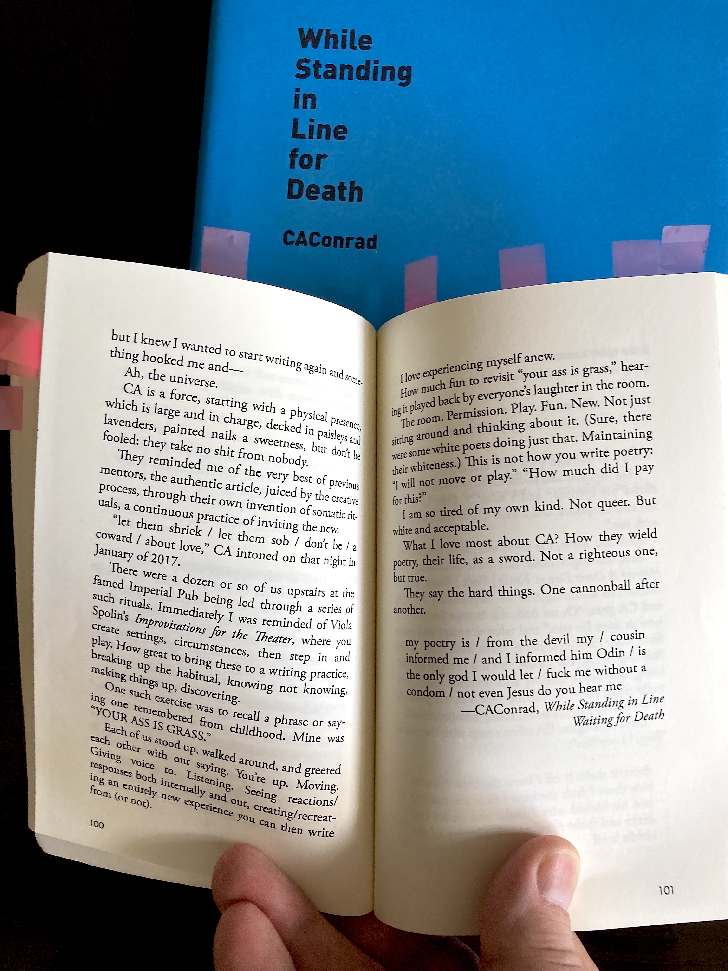 Posted on July 28, 2022 by Kirby“I GASPED” 👑👑👑👑👑👑👑👑👑One of my favorite living QUEERS @itsakirby has a defiant, beautiful new book! CHECK IT OUT: https://t.co/JwdFv7ktWgI GASPED when I read my cameo 😃LOVE YOU MY PRETTY IN PINK SISTER 🌺⚧️ pic.twitter.com/cAJkO4V5lg— CAConrad (@CAConrad88) July 14, 2022 That makes two of us! Love you sweet sis, bride of poetry. Share this: Click to share on X (Opens in new window) X Click to share on Facebook (Opens in new window) Facebook Like Loading... Related
