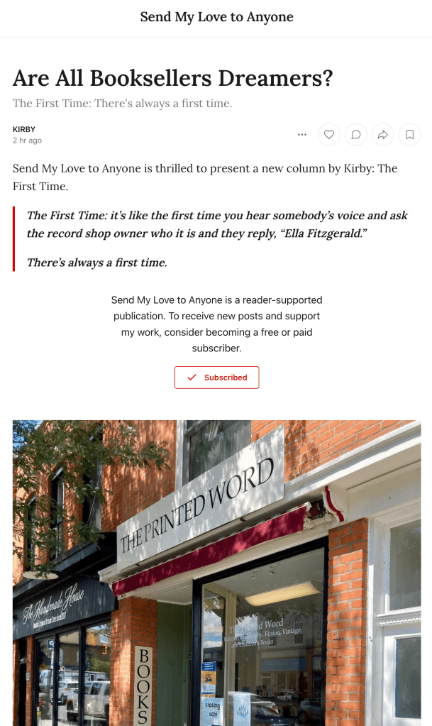 My new column, The First Time, debuts today at Send My Love to Anyone