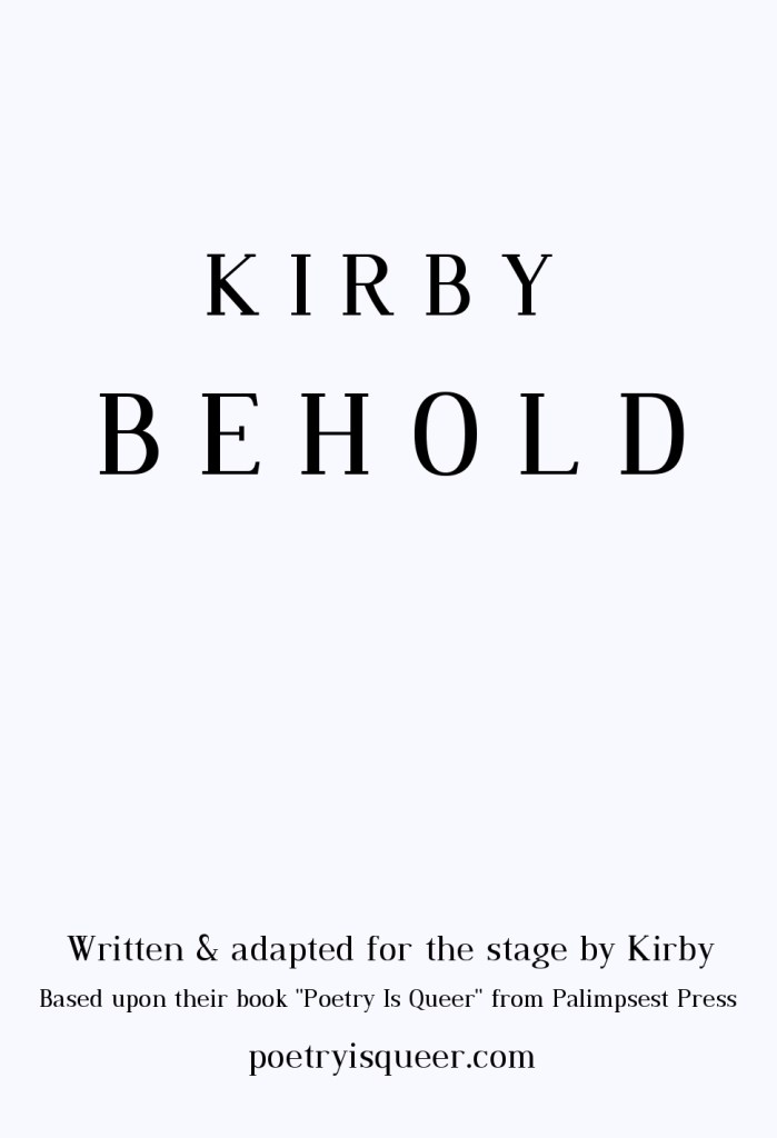 BOOKING INFO TO BRING KIRBY TO YOUR LIVING ROOM OR INTIMATE VENUE CONTACT: knifeforkbook [at] gmail [dot] com Subject line: Behold