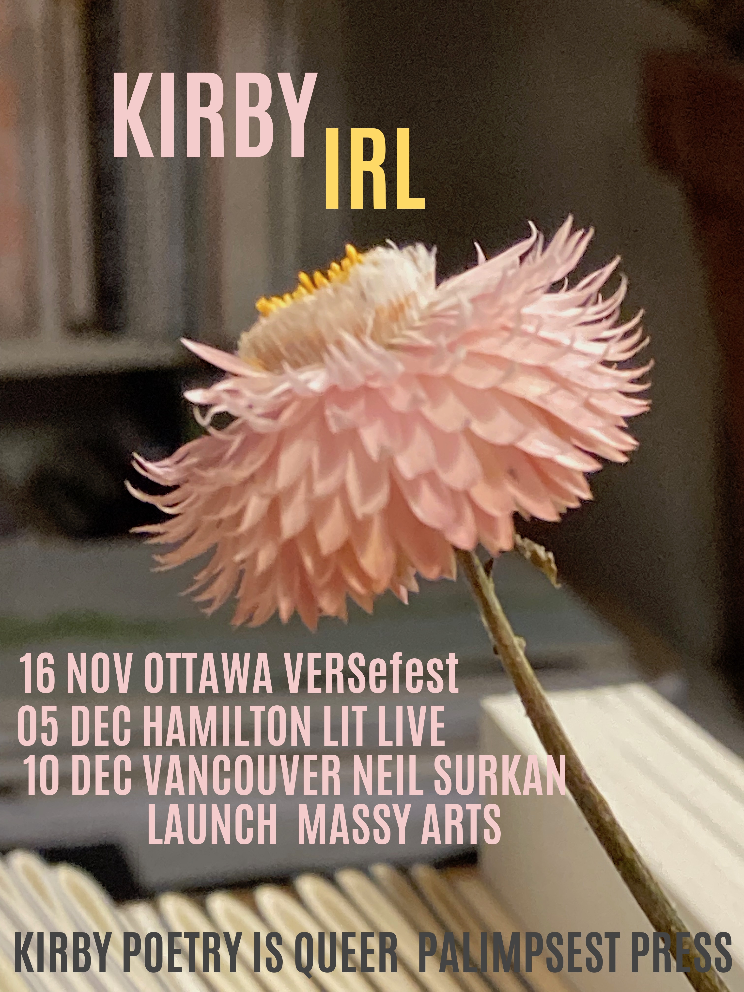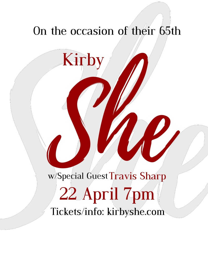 22 APRIL 7PM TORONTO (LIVESTREAM) KIRBY READS SHE on their 65th Birthday w/Special Guest TRAVIS SHARP TICKETS/INFO