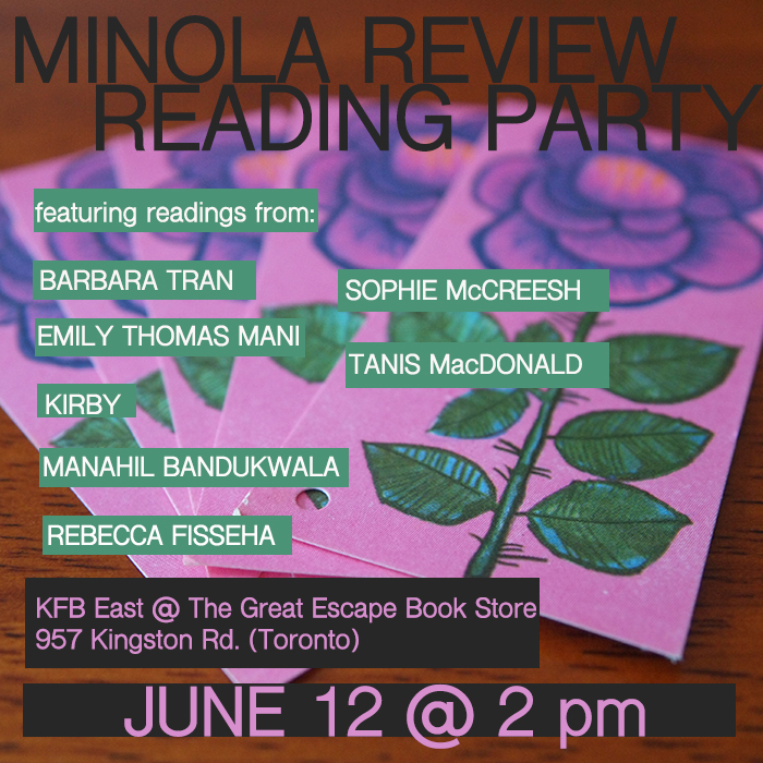 12 JUNE 2PM TORONTO MINOLA REVIEW READING PARTY KFB EAST