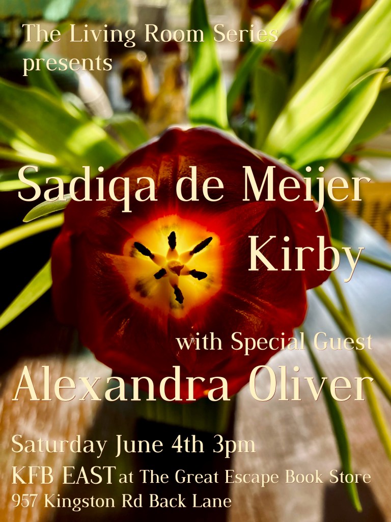 04 JUNE 3PM TORONTO KFB EAST w Sadiqa de Meijer + Special Guest Alexandra Oliver NOTE: Strictly Limited Seating. Masks Required.