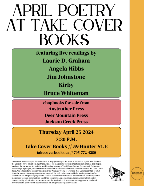 25 APRIL 7PM PETERBOROUGH TAKE COVER BOOKS w/JIM JOHNSTONE