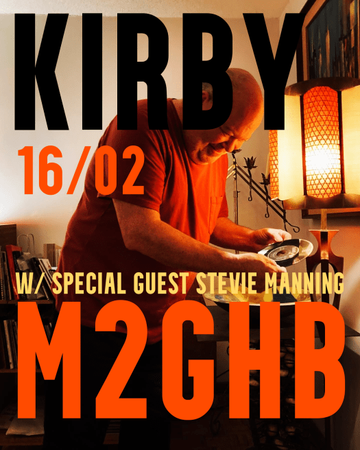 16 FEB 3PM SERIES DEBUT KIRBY SPINS MUSIC TO GIVE HEAD BY w/Special Guest STEVIE MANNNING (Taped before a live audience, then posted.)