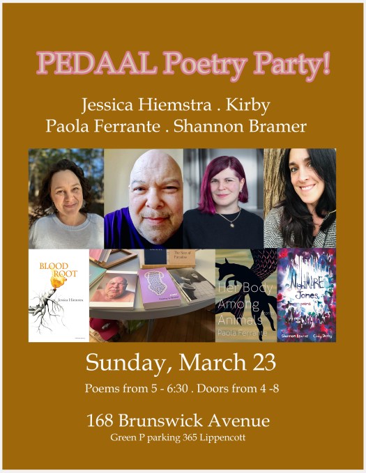 23 MARCH 5PM TORONTO at PEDAAL in support of JESSICA JOY HIEMSTRA “BLOOD ROOT“ w/SHANNON BRAMER + PAOLA FERRANTE